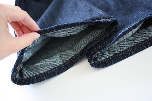 Agora é só virar essas bordas de tecido para dentro e vestir novamente a calça para conferir se o comprimento está correto.